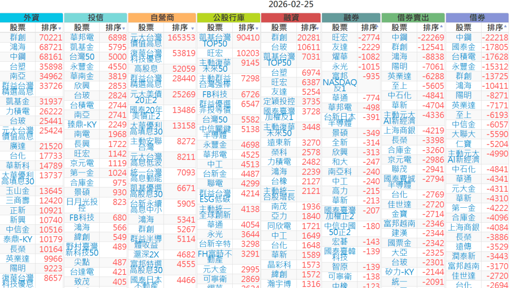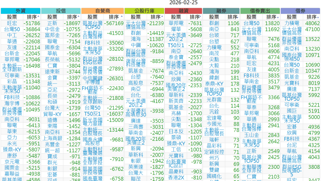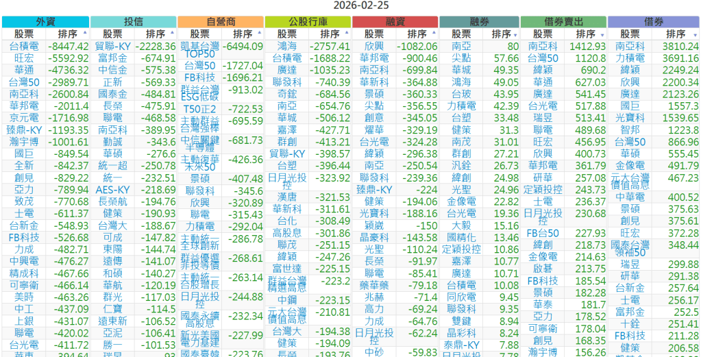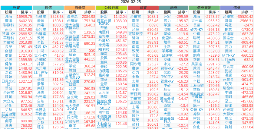 2026-0225【外資、投信】買賣超個股 2026-02-25 股狗網小編 投資誌-大盤 發表留言 上市:【外資、投信】買超(依金額) (單位:百萬) 上市:【外資、投信】賣超(依金額) (單位:百萬) 上市:【外資、投信】買超(依張數) (單位:張數) 上市:【外資、投信】賣超(依張數) (單位:張數) 免責宣言 本網站文章所提供資訊僅供參考,並無任何推介買賣之意,投資人應自行承擔交易風險。 分享此文: 分享到 X(在新視窗中開啟) X 分享到 Facebook(在新視窗中開啟) Facebook 喜歡 正在載入...