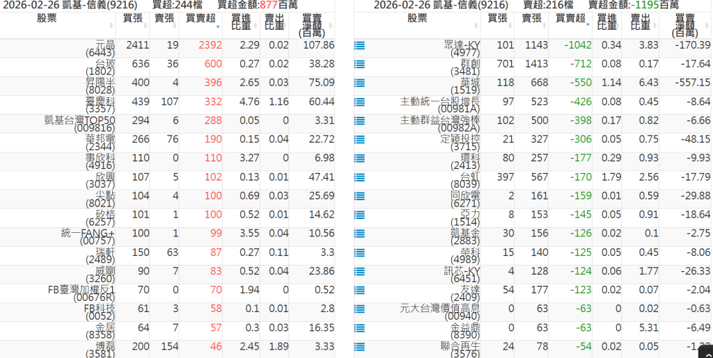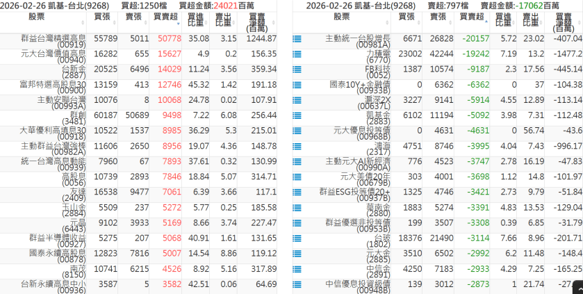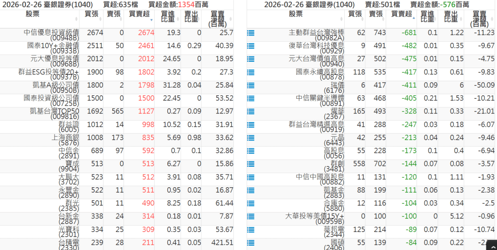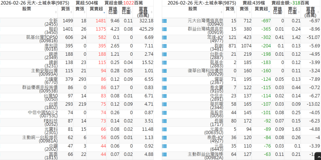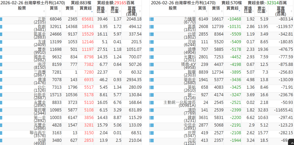 2026-0226關鍵券商買賣超 2026-02-26 股狗網小編 籌碼面每日資訊 發表留言 關鍵券商買賣超: 臺銀證券(1040): 台灣摩根士丹利(1470): 凱基台北(9268): 凱基信義(9216): 元大土城永寧(9875): 康和永和(845B) : 富邦建國(9658): 免責宣言 本網站文章所提供資訊僅供參考,並無任何推介買賣之意,投資人應自行承擔交易風險。 分享此文: 分享到 X(在新視窗中開啟) X 分享到 Facebook(在新視窗中開啟) Facebook 喜歡 正在載入...