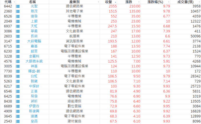 2026-0302日新高爆量上漲股 2026-03-02 股狗網小編 選股條件 發表留言 利用股狗選股的選股條件可以【挑選突破20日新高,爆量上漲起漲點股票】 1.股狗選股 https://www.stockdog.com.tw 2.選股條件: a.收盤價創20日新高 b.當日漲幅 > 2% C.成交量大於5日均量2倍 免責宣言 本網站文章所提供資訊僅供參考,並無任何推介買賣之意,投資人應自行承擔交易風險。 分享此文: 分享到 X(在新視窗中開啟) X 分享到 Facebook(在新視窗中開啟) Facebook 喜歡 正在載入...
