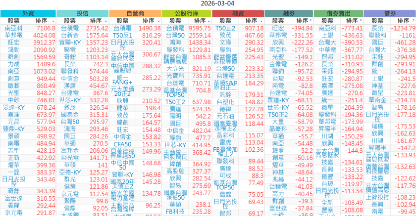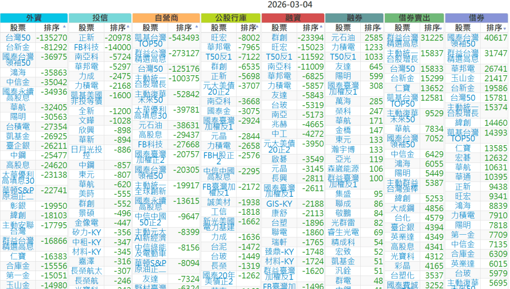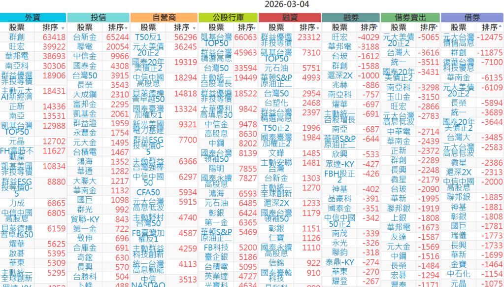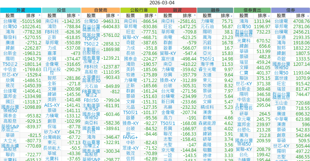 2026-0304【外資、投信】買賣超個股 2026-03-04 股狗網小編 投資誌-大盤 發表留言 上市:【外資、投信】買超(依金額) (單位:百萬) 上市:【外資、投信】賣超(依金額) (單位:百萬) 上市:【外資、投信】買超(依張數) (單位:張數) 上市:【外資、投信】賣超(依張數) (單位:張數) 免責宣言 本網站文章所提供資訊僅供參考,並無任何推介買賣之意,投資人應自行承擔交易風險。 分享此文: 分享到 X(在新視窗中開啟) X 分享到 Facebook(在新視窗中開啟) Facebook 喜歡 正在載入...