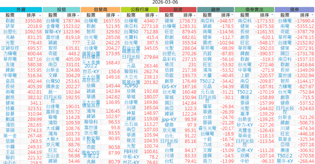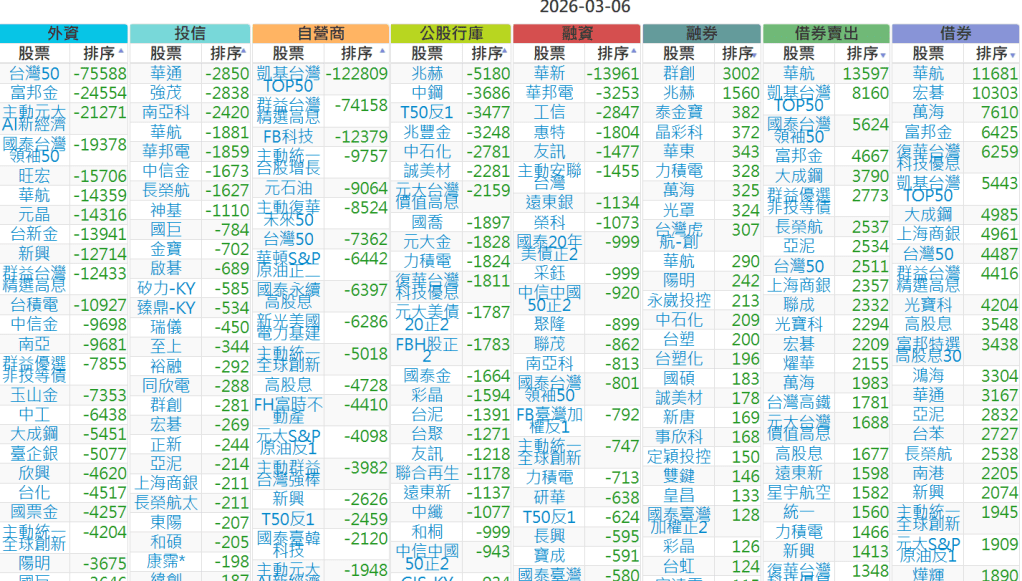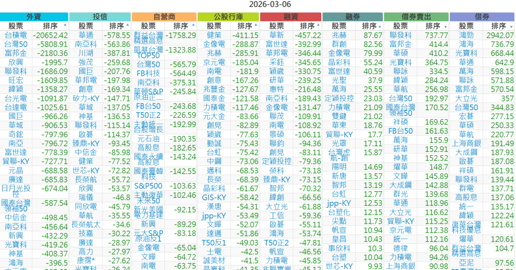 2026-0306【外資、投信】買賣超個股 2026-03-07 股狗網小編 投資誌-大盤 發表留言 上市:【外資、投信】買超(依金額) (單位:百萬) 上市:【外資、投信】賣超(依金額) (單位:百萬) 上市:【外資、投信】買超(依張數) (單位:張數) 上市:【外資、投信】賣超(依張數) (單位:張數) 免責宣言 本網站文章所提供資訊僅供參考,並無任何推介買賣之意,投資人應自行承擔交易風險。 分享此文: 分享到 X(在新視窗中開啟) X 分享到 Facebook(在新視窗中開啟) Facebook 喜歡 正在載入...