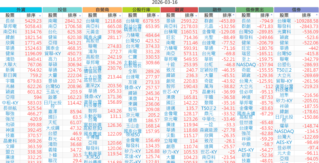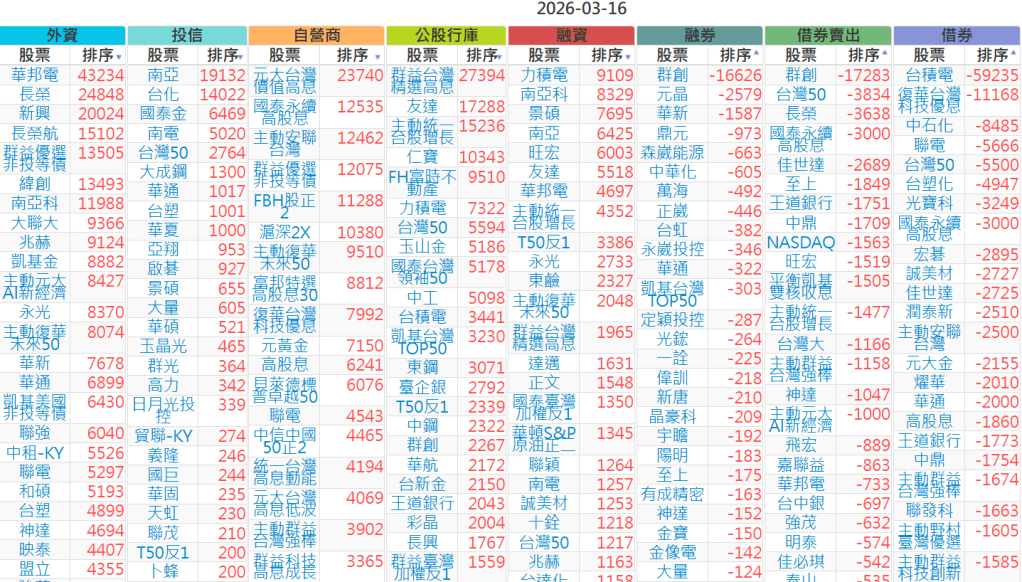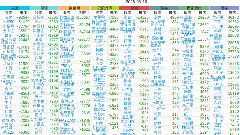 2026-0316【外資、投信】買賣超個股 2026-03-16 股狗網小編 投資誌-大盤 發表留言 上市:【外資、投信】買超(依金額) (單位:百萬) 上市:【外資、投信】賣超(依金額) (單位:百萬) 上市:【外資、投信】買超(依張數) (單位:張數) 上市:【外資、投信】賣超(依張數) (單位:張數) 免責宣言 本網站文章所提供資訊僅供參考,並無任何推介買賣之意,投資人應自行承擔交易風險。 分享此文: 分享到 X(在新視窗中開啟) X 分享到 Facebook(在新視窗中開啟) Facebook 喜歡 正在載入...