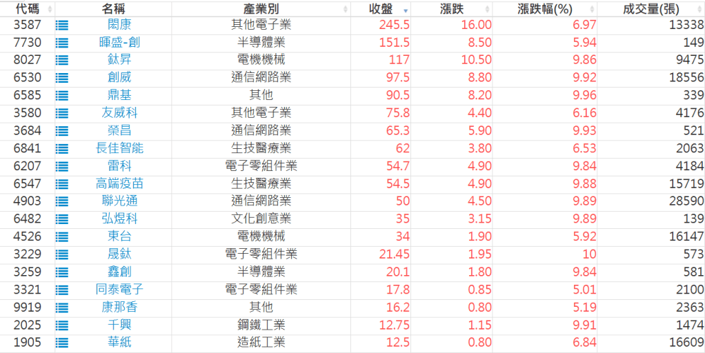 2026-0323日新高爆量上漲股 2026-03-23 股狗網小編 選股條件 發表留言 利用股狗選股的選股條件可以【挑選突破20日新高,爆量上漲起漲點股票】 1.股狗選股 https://www.stockdog.com.tw 2.選股條件: a.收盤價創20日新高 b.當日漲幅 > 2% C.成交量大於5日均量2倍 免責宣言 本網站文章所提供資訊僅供參考,並無任何推介買賣之意,投資人應自行承擔交易風險。 分享此文: 分享到 X(在新視窗中開啟) X 分享到 Facebook(在新視窗中開啟) Facebook 喜歡 正在載入...