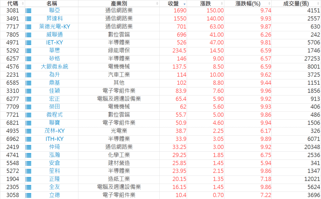 2026-0326日新高爆量上漲股 2026-03-26 股狗網小編 選股條件 發表留言 利用股狗選股的選股條件可以【挑選突破20日新高,爆量上漲起漲點股票】 1.股狗選股 https://www.stockdog.com.tw 2.選股條件: a.收盤價創20日新高 b.當日漲幅 > 2% C.成交量大於5日均量2倍 免責宣言 本網站文章所提供資訊僅供參考,並無任何推介買賣之意,投資人應自行承擔交易風險。 分享此文: 分享到 X(在新視窗中開啟) X 分享到 Facebook(在新視窗中開啟) Facebook 喜歡 正在載入...