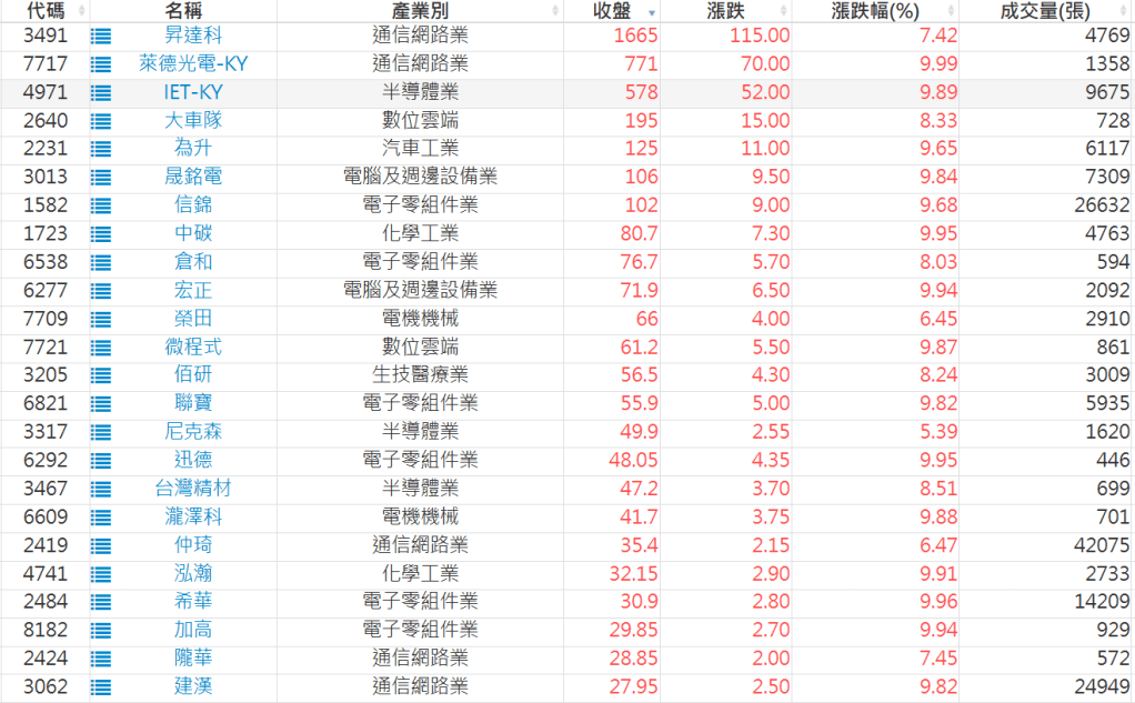 2026-0327日新高爆量上漲股 2026-03-27 股狗網小編 選股條件 發表留言 利用股狗選股的選股條件可以【挑選突破20日新高,爆量上漲起漲點股票】 1.股狗選股 https://www.stockdog.com.tw 2.選股條件: a.收盤價創20日新高 b.當日漲幅 > 2% C.成交量大於5日均量2倍 免責宣言 本網站文章所提供資訊僅供參考,並無任何推介買賣之意,投資人應自行承擔交易風險。 分享此文: 分享到 X(在新視窗中開啟) X 分享到 Facebook(在新視窗中開啟) Facebook 喜歡 正在載入...