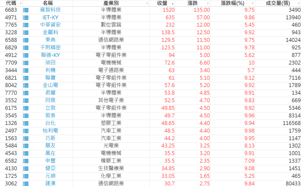 2026-0330日新高爆量上漲股 2026-03-30 股狗網小編 選股條件 發表留言 利用股狗選股的選股條件可以【挑選突破20日新高,爆量上漲起漲點股票】 1.股狗選股 https://www.stockdog.com.tw 2.選股條件: a.收盤價創20日新高 b.當日漲幅 > 2% C.成交量大於5日均量2倍 免責宣言 本網站文章所提供資訊僅供參考,並無任何推介買賣之意,投資人應自行承擔交易風險。 分享此文: 分享到 X(在新視窗中開啟) X 分享到 Facebook(在新視窗中開啟) Facebook 喜歡 正在載入...
