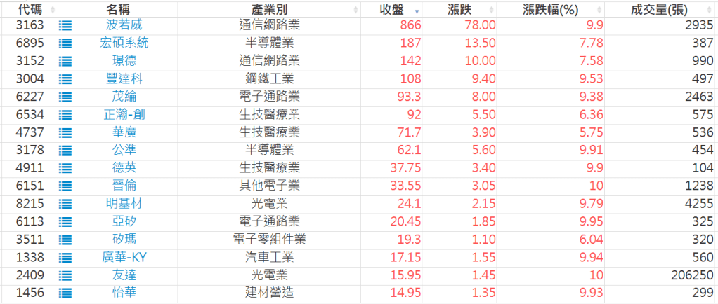 2026-0401日新高爆量上漲股 2026-04-01 股狗網小編 選股條件 發表留言 利用股狗選股的選股條件可以【挑選突破20日新高,爆量上漲起漲點股票】 1.股狗選股 https://www.stockdog.com.tw 2.選股條件: a.收盤價創20日新高 b.當日漲幅 > 2% C.成交量大於5日均量2倍 免責宣言 本網站文章所提供資訊僅供參考,並無任何推介買賣之意,投資人應自行承擔交易風險。 分享此文: 分享到 X(在新視窗中開啟) X 分享到 Facebook(在新視窗中開啟) Facebook 喜歡 正在載入...