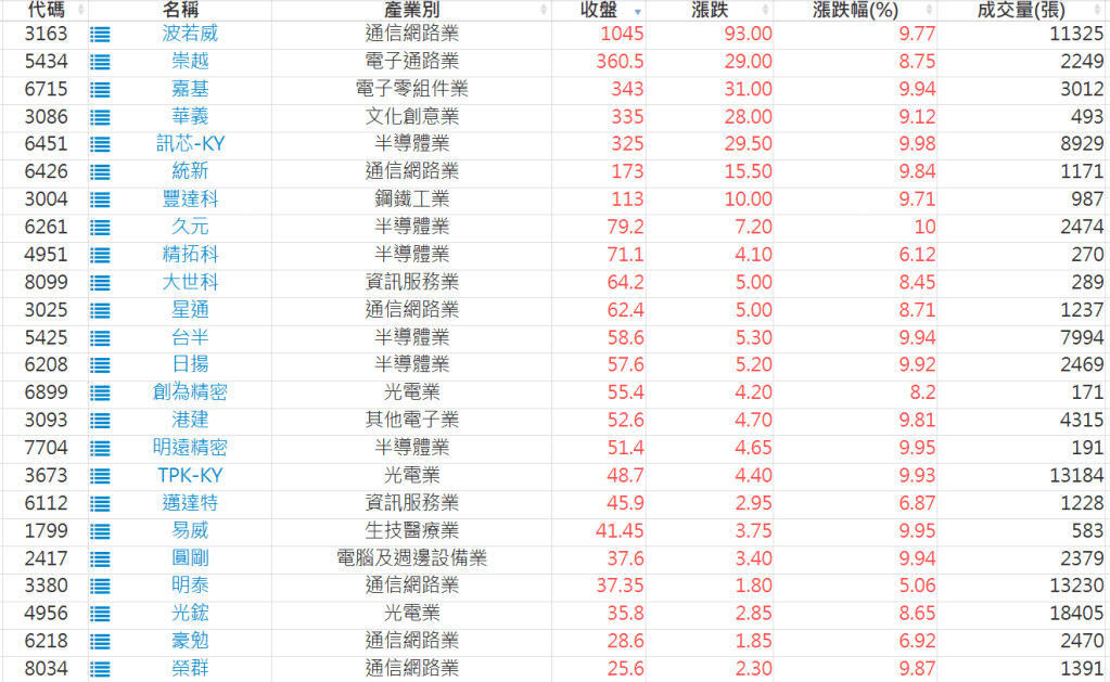 2026-0407日新高爆量上漲股 2026-04-07 股狗網小編 選股條件 發表留言 利用股狗選股的選股條件可以【挑選突破20日新高,爆量上漲起漲點股票】 1.股狗選股 https://www.stockdog.com.tw 2.選股條件: a.收盤價創20日新高 b.當日漲幅 > 2% C.成交量大於5日均量2倍 免責宣言 本網站文章所提供資訊僅供參考,並無任何推介買賣之意,投資人應自行承擔交易風險。 分享此文: 分享到 X(在新視窗中開啟) X 分享到 Facebook(在新視窗中開啟) Facebook 喜歡 正在載入...
