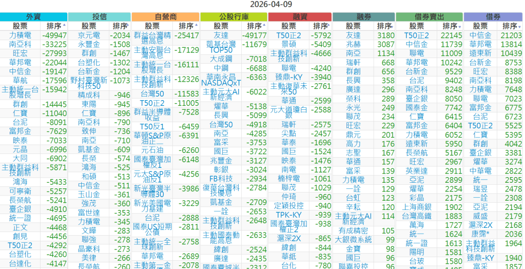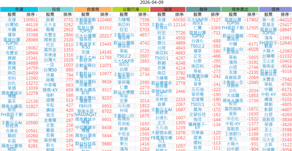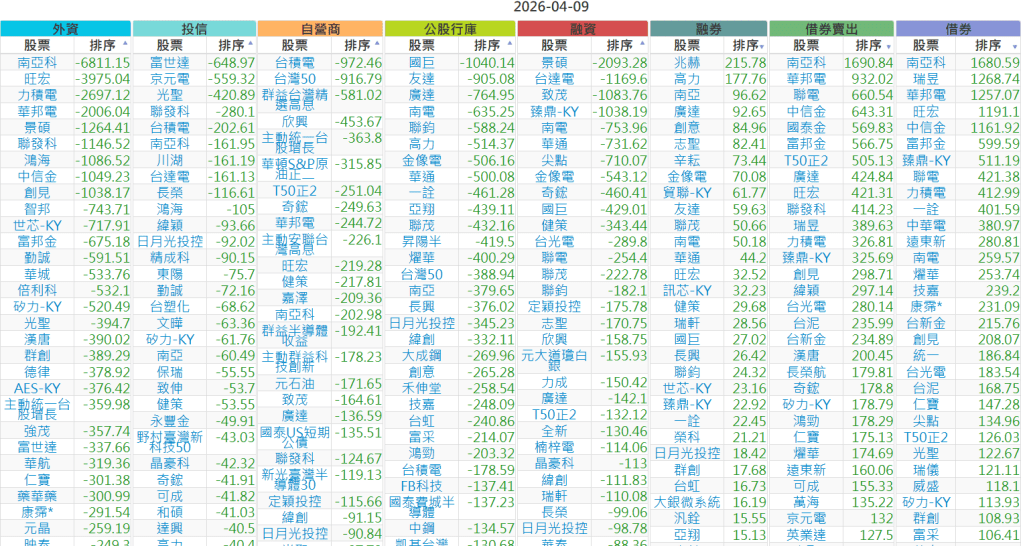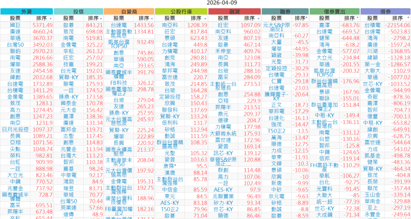 2026-0409【外資、投信】買賣超個股 2026-04-09 股狗網小編 投資誌-大盤 發表留言 上市:【外資、投信】買超(依金額) (單位:百萬) 上市:【外資、投信】賣超(依金額) (單位:百萬) 上市:【外資、投信】買超(依張數) (單位:張數) 上市:【外資、投信】賣超(依張數) (單位:張數) 免責宣言 本網站文章所提供資訊僅供參考,並無任何推介買賣之意,投資人應自行承擔交易風險。 分享此文: 分享到 X(在新視窗中開啟) X 分享到 Facebook(在新視窗中開啟) Facebook 喜歡 正在載入...