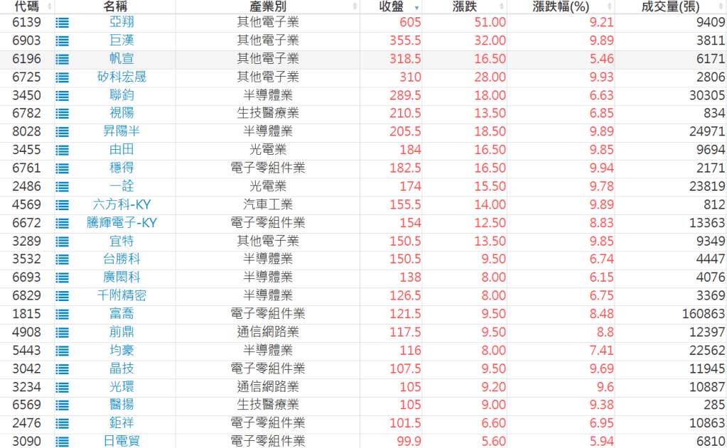 2026-0409日新高爆量上漲股 2026-04-09 股狗網小編 選股條件 發表留言 利用股狗選股的選股條件可以【挑選突破20日新高,爆量上漲起漲點股票】 1.股狗選股 https://www.stockdog.com.tw 2.選股條件: a.收盤價創20日新高 b.當日漲幅 > 2% C.成交量大於5日均量2倍 免責宣言 本網站文章所提供資訊僅供參考,並無任何推介買賣之意,投資人應自行承擔交易風險。 分享此文: 分享到 X(在新視窗中開啟) X 分享到 Facebook(在新視窗中開啟) Facebook 喜歡 正在載入...