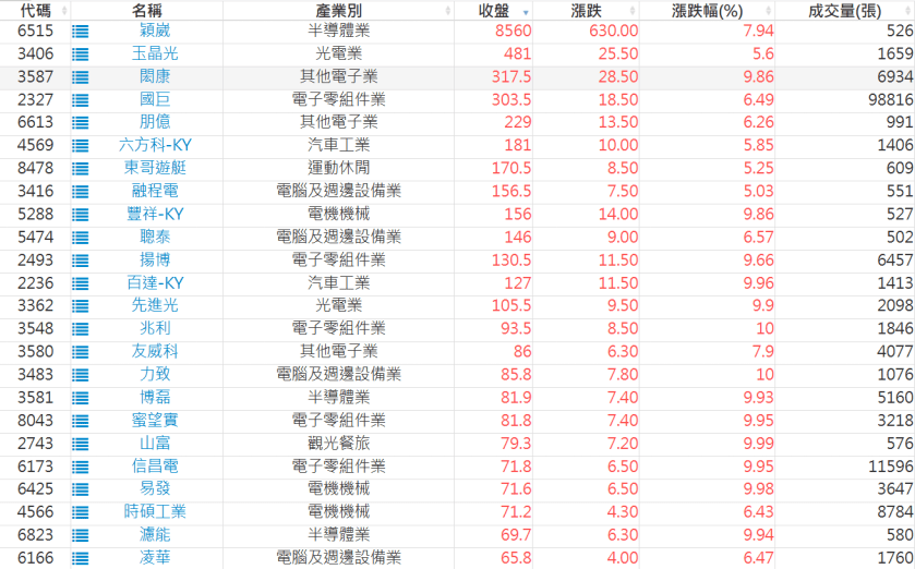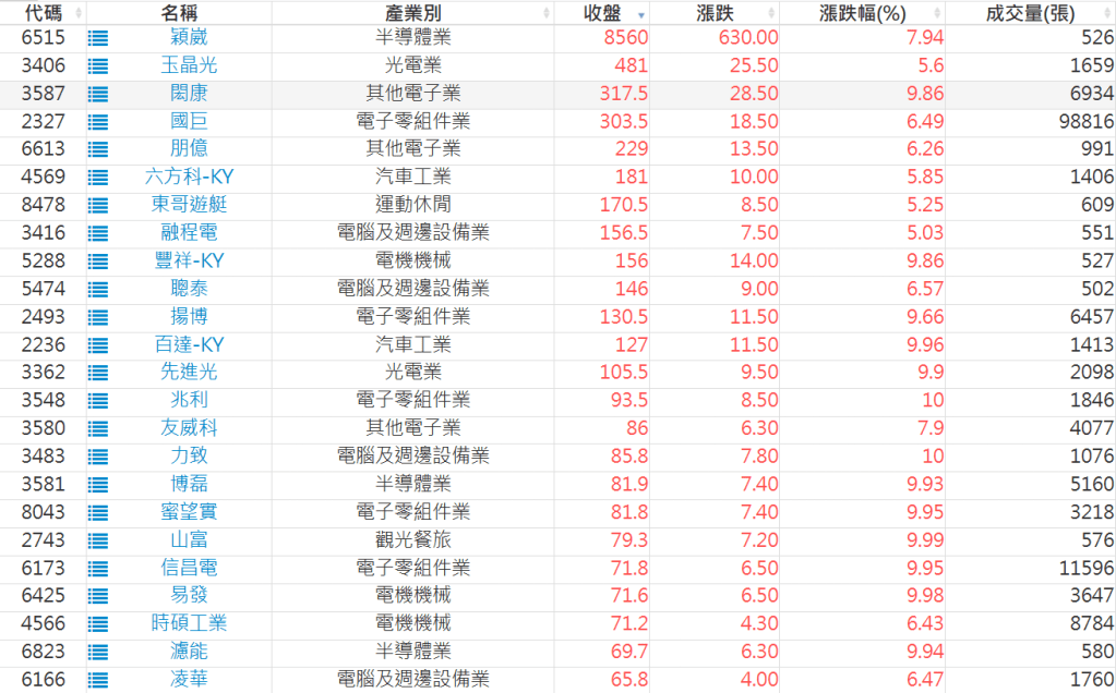2026-0413日新高爆量上漲股 2026-04-13 股狗網小編 選股條件 發表留言 利用股狗選股的選股條件可以【挑選突破20日新高,爆量上漲起漲點股票】 1.股狗選股 https://www.stockdog.com.tw 2.選股條件: a.收盤價創20日新高 b.當日漲幅 > 2% C.成交量大於5日均量2倍 免責宣言 本網站文章所提供資訊僅供參考,並無任何推介買賣之意,投資人應自行承擔交易風險。 分享此文: 分享到 X(在新視窗中開啟) X 分享到 Facebook(在新視窗中開啟) Facebook 喜歡 正在載入...