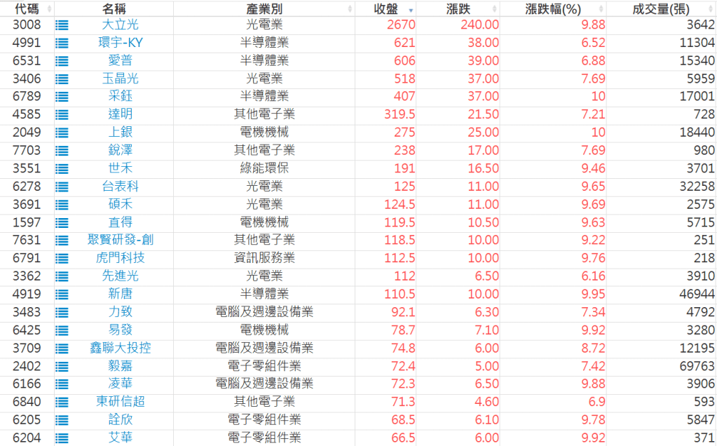 2026-0414日新高爆量上漲股 2026-04-14 股狗網小編 選股條件 發表留言 利用股狗選股的選股條件可以【挑選突破20日新高,爆量上漲起漲點股票】 1.股狗選股 https://www.stockdog.com.tw 2.選股條件: a.收盤價創20日新高 b.當日漲幅 > 2% C.成交量大於5日均量2倍 免責宣言 本網站文章所提供資訊僅供參考,並無任何推介買賣之意,投資人應自行承擔交易風險。 分享此文: 分享到 X(在新視窗中開啟) X 分享到 Facebook(在新視窗中開啟) Facebook 喜歡 正在載入...