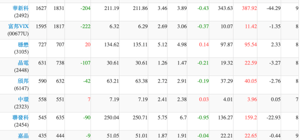 權證在外流通量 1.張數排行為扣除自營商避險淨額後
