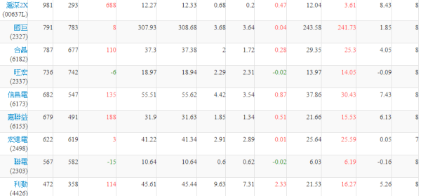 權證在外流通量 1.張數排行為扣除自營商避險淨額後