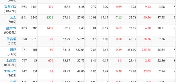 權證在外流通量 1.張數排行為扣除自營商避險淨額後