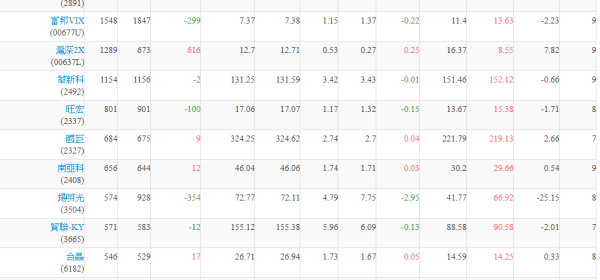 權證在外流通量 1.張數排行為扣除自營商避險淨額後