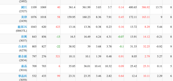 權證在外流通量 1.張數排行為扣除自營商避險淨額後