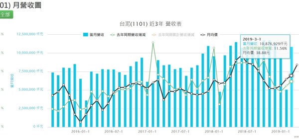 一、單月營收年增率 水泥傳產股台泥(1101)、亞