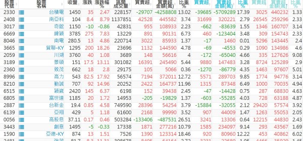 上市:【外資、投信】買超(依金額) &