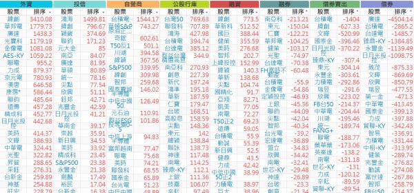 上市:【外資、投信】買超(依金額) &