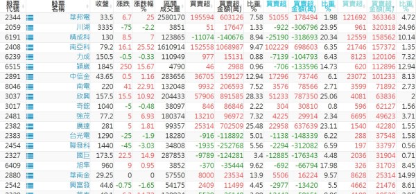 上市:【外資、投信】買超(依金額) &