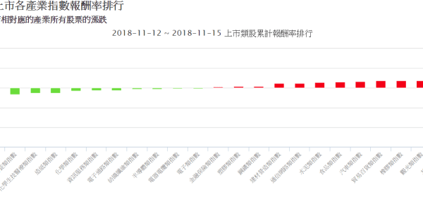 一、上市各產業指數報酬率排行 二、漲幅排行(上市)