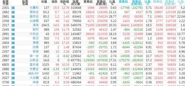 上市:【外資、投信】買超(依金額) &
