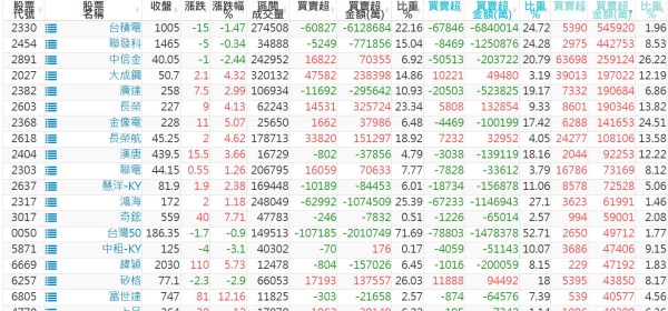外資本周累積【賣超】約1021億元。 【上市外資買