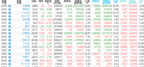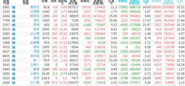 上市:【外資、投信】買超(依金額) &