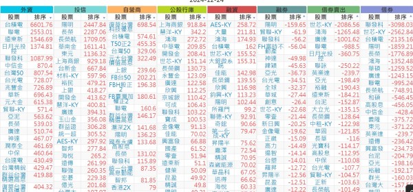 2024-1224【外資、投信】買賣超個股