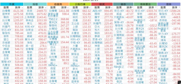 2024-1225【外資、投信】買賣超個股