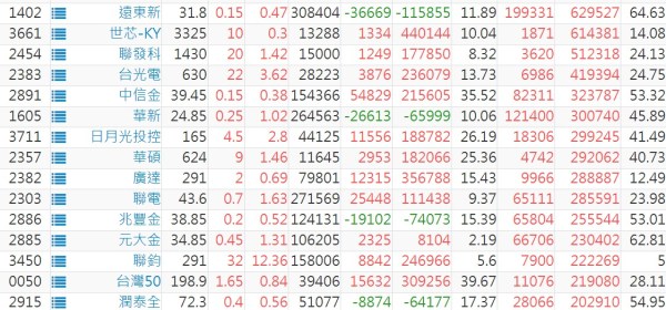 上市:【外資、投信】買超(依金額) &