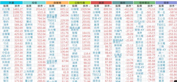 上市:【外資、投信】買超(依金額) &