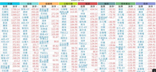 2024/11/04~2024/11/08近5日【外資】買賣超個股