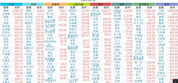 2024/08/12~2024/08/16近5日【外資】買賣超個股