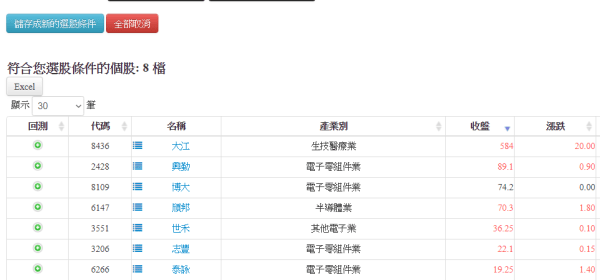 利用股狗選股的選股條件可以【挑選突破20日新高,爆