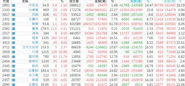 上市:【外資、投信】買超(依金額) &
