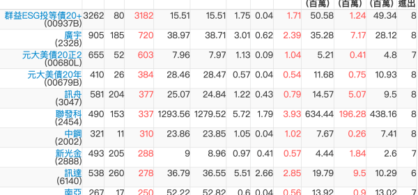 關鍵券商買賣超: 臺銀證券(1040): 台灣摩根