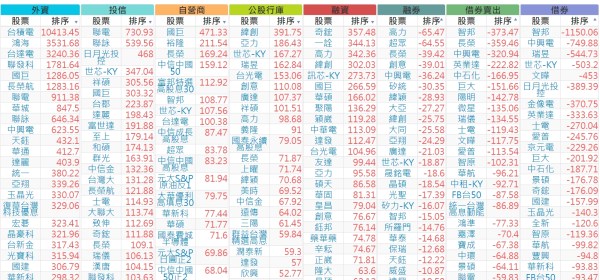 上市:【外資、投信】買超(依金額) &